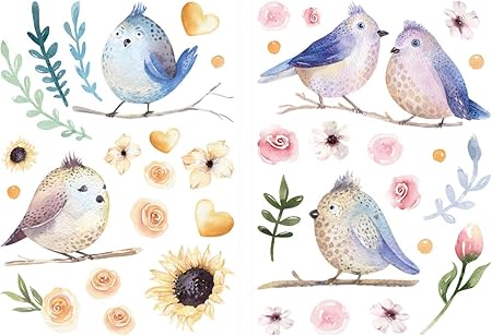 Sticker Mural Aquarelle Chambre Denfant Deco Oiseaux Fleurs Plumes Decoration Murale - Globe, Contour, Fait, Depuis, Oiseaux, Animaux, Et, Fleurs, Icônes.
