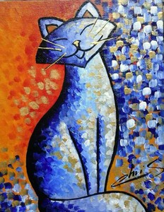 Tableau Peinture A L Huile Animal Chat 4 Tableau Tableaux Animaux Arts Reproductions Peinture A L Huile Sur Toile De Lin , Ce chat peint en gris et blanc est habillé dun le fond du tableau est peint en rouge foncé avec des reflets or, le fauteuil de.