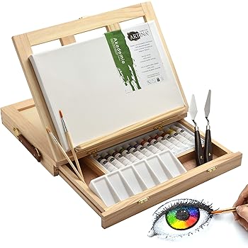 15 Pinceaux Artina Chevalet De Table 1 Toile Set De 28 Pieces Pour Peinture Acrylique 12 Tubes De Peinture - Peinture acrylique et peinture à l'huile sur toile.